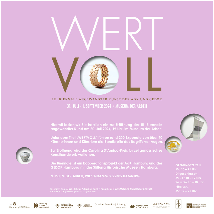 Ausstellung vom 11. – 28. September 2024 Vernissage am Dienstag, 10. September 2024 um 19 Uhr – Begrüßung Bettina Niemeyer Ausstellende Künstlerinnen: Almut Andersson, Marjon Reinsberger, Annette Reher, Barbara Guthmann, Anke Rasche-Suhr, Susanne Behrens, Nana König, Svea Imholze, Annette Falck. Jubiläumskonzert „100 Jahre Koppel 66“ veranstaltet vom Fachbereich Musik der…